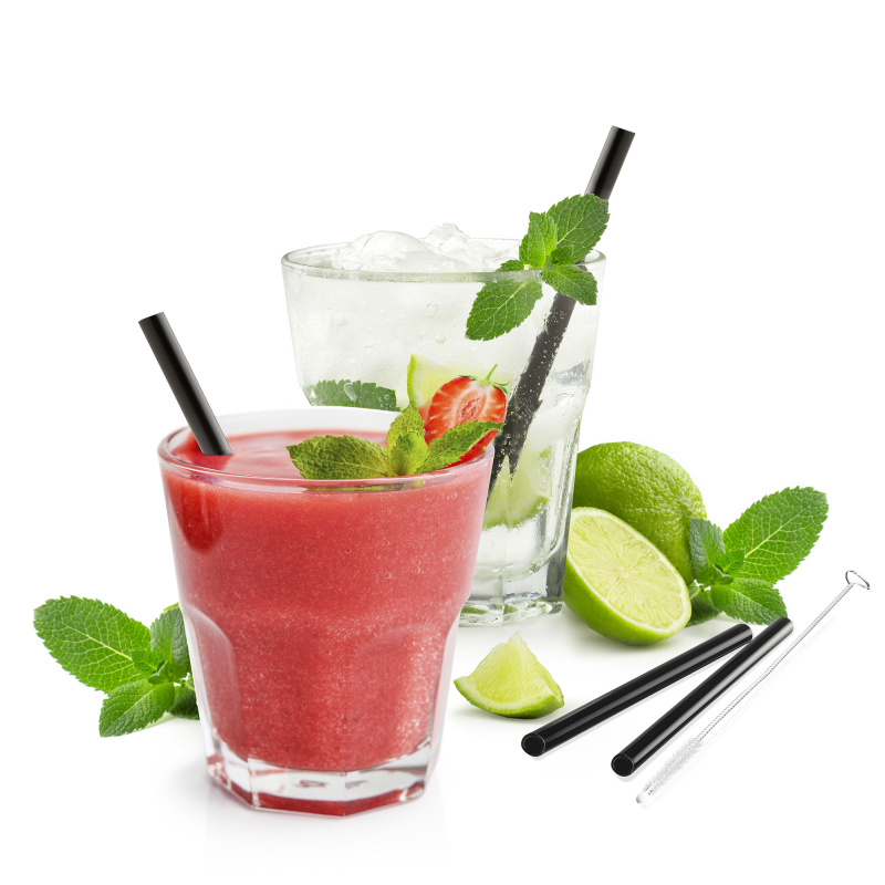 С грижа за природата! Комплектът от 4 бр стъклени сламки за пиене са една екологична и здравословна алтернатива на пластмасовите сламки.Изработени от рециклируемо стъкло, те са предназначени за многократна употреба. Не задържайки никакви аромати и вкусове, със стъклените сламки ще се насладите на любимите ви сокове, смути, вода, коктейли, кафе и др.За миене в съдомиялна машина в помощ могат да ви бъдат специалните приставки за стъклени сламки:GEFU Поставка за 4 бр стъклени сламки, за миене в съдомиялна машина FUTURE - код 12713