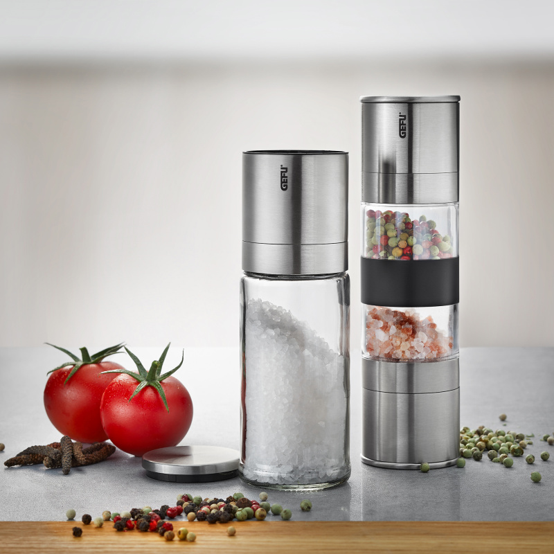 GEFU Мелничка за сол или пипер LAMOLA• Регулиране на едрината на смилане• Подходяща и за сол и за пипер • Размери: Ø 5,5 х 9 х 16,6 см (h)• Керамичен смилащ механизъм• Материал: неръждаема стомана, пластмаса, стъкло Производител: GEFU / Германия