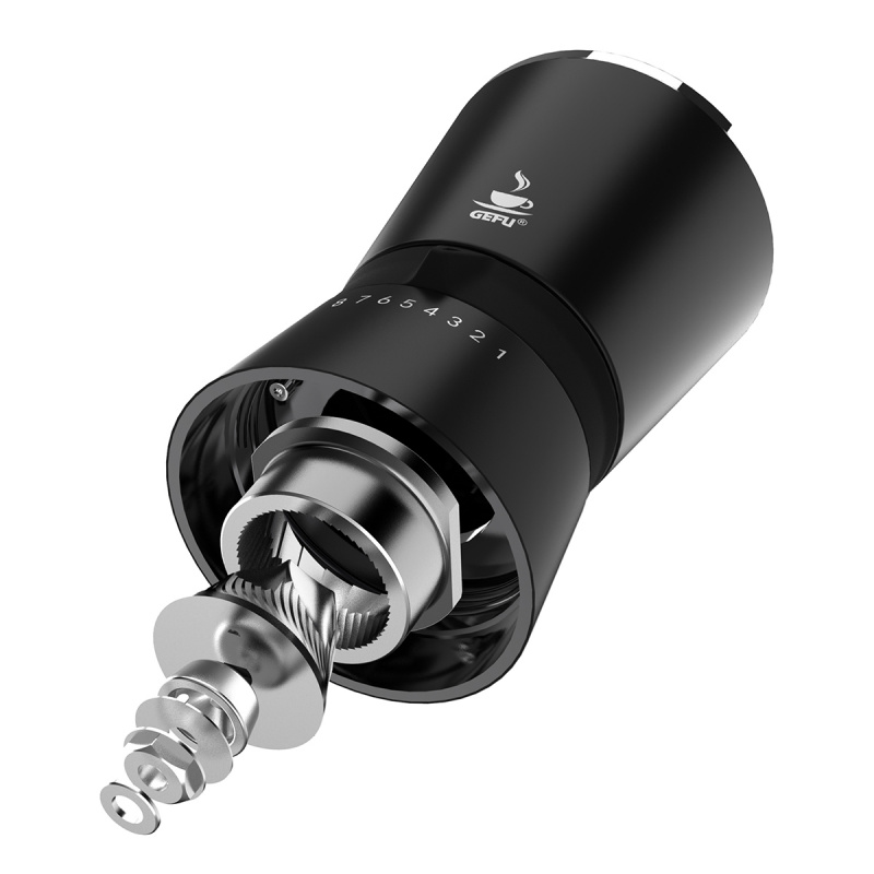 GEFU Кафемелачка “SANTIAGO“ • Материал: неръждаема стомана, алуминий, пластмаса, стъкло• Подвижна манивела • Размери: Ø 9 х 21,5 см • Със стоманен механизъм за смилане • Регулиращи се 8 степени на смилане Производител: GEFU / Германия