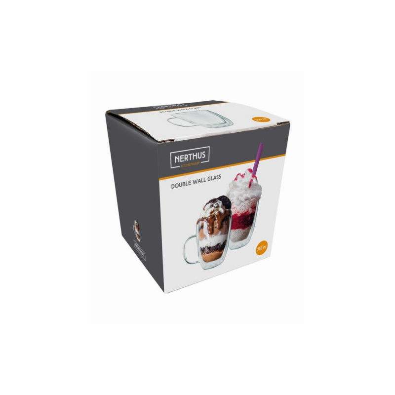 Двустенна чаша на Nerthus, изработена от топлоустойчиво боросиликатно стъкло, подходяща за топли и студени напитки и десерти. Без значение какво ще предложите на гостите си, температурата на външната стена на чашата остава постоянна, благодарение на изолационния ефект на въздуха между двата стъклени слоя.