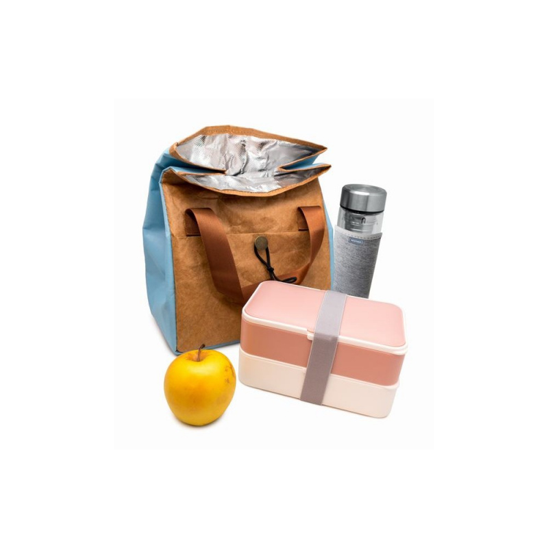 С вместимостта си от 8 л., чантата е достатъчно голяма за две големи кутии за храна, бутилка с напитка и един плод.