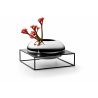 Вазата SOLERO се откроява със своя дизайн, подчертавайки оригиналния ви вкус за декорация. Тази спираща дъха "плаваща" ваза, изглежда сякаш се носи във въздуха. Овалната ваза е поставена в стоманена, индустриална рамка с форма на куб, чиито черни ръбове ясно контрастират с блестящата й никелирана повърхност. Основата е прахово боядисана и е с размери 28 х 28 см. Цялата ваза е висока 16 см.Предлага се в три размера: S, L и XL. Ултрамодерната линия SOLERO ще допълни перфектно всеки интериор, който се основава на висококачествени материали и вечен дизайн.