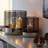 Свещникът LUNA има овална основа от полиран никел и полупрозрачна телена конструкция от прахово боядисана стомана. Проектиран е в модерен стил и привлича вниманието благодарение на контрастната комбинация от различни материали. Основата е полирана като огледало, благодарение на което отразява светлината и привлича вниманието с красив гланц. На свой ред свещта и нейният пламък са скрити зад черна телена мрежа. Светлината, леко проникваща през пролуките, създава приятна и уютна атмосфера.