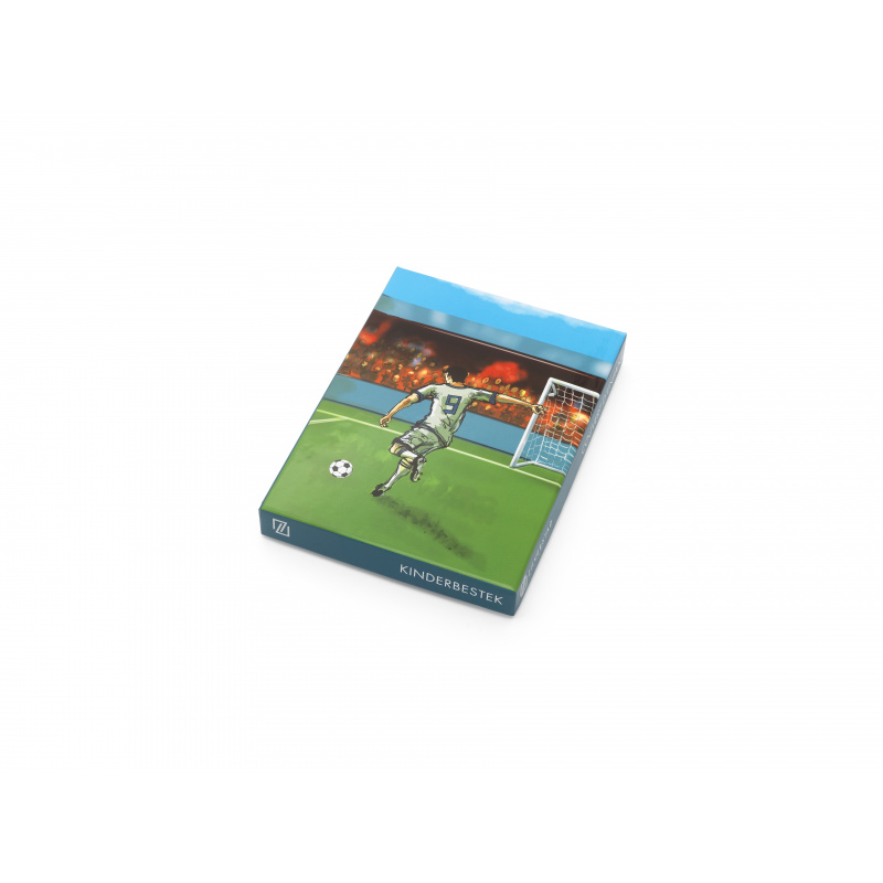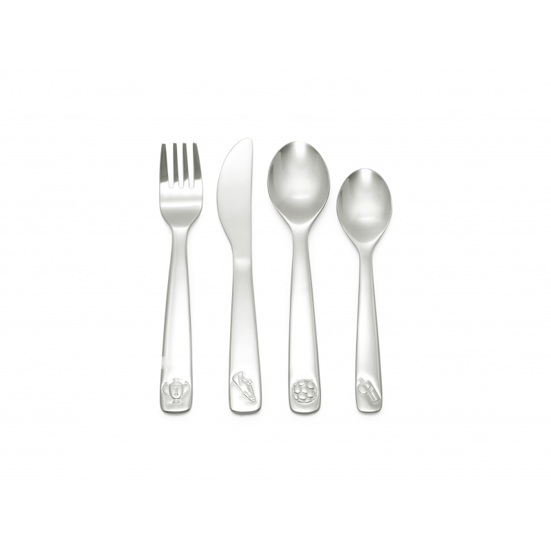 ZILVERSTAD Комплект детски прибори за хранене “Футбол“ • Комплект от 4 части• Размери: 16 / 16,9 / 16 /14,1 см • С декорация в края на дръжката - футболни аксесоари• Предлага се в красива цветна кутия• Материал: неръждаема стомана 18/10• Тегло: 0,174 кг • Подходящи за миене в съдомиялна машина• Бранд: ZILVERSTAD Производител: Bredemeijer Group / Нидерландия