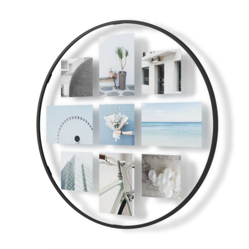 UMBRA Колаж за снимки за стенен монтаж “INFINITY“• Цвят: черен• За 9 бр снимки с размери 10 х 15 см• Габаритен размер: Ø 53 см. • Събира до 9 снимки (в зависимост от размера)• Материал: метал, стъклоПроизводител: UMBRA / КанадаDESIGN: SUNG WOOK PARK
