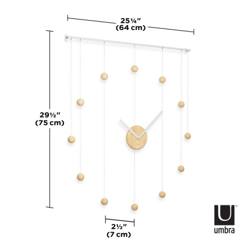 UMBRA Часовник за стена “HANGTIME“• Цвят: бял/дърво• Размери: 64 х 75 х 7 см• Размери на опаковката: 13 х 66 х 10 см.• Тегло: 0,500 кг. • Материал: метал, естествено дърво • Безшумен механизъм• Захранване: 1 бр батерия АА (не е включена)Производител: UMBRA / КанадаDESIGN: SUNG WOOK PARK