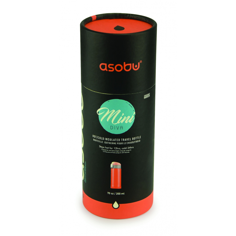 ASOBU Двустенен термос с вакуумна изолация “MINI DIVA“ • Двустенна вакуумна изолация• Бутон за отключване и заключване на капака• Вместимост: 200 мл.• Поддържа напитката студена до 24 часа• Поддържа напитката гореща до 12 часа• Размери: 6 x 16,5 см • 100% без съдържание на Бисфенол А /BPA/• Тегло: 0,170 кг• Материал: неръждаема стомана 18/8• Цвят: тюркоаз• Не загрявайте на котлон или в микровълнова фурна • Не замразявайте и не слагайте във фризер • Мийте само на ръка• 100% без съдържание на Бисфенол А /BPA/Производител: ASOBU / Канада