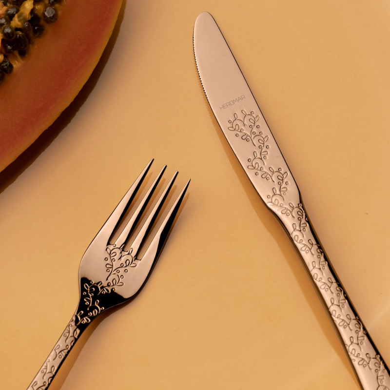 Всички прибори от марката Herdmar са произведени от висококачествена неръждаема стомана, съгласно най-съвременните изисквания за производство на прибори и под строг контрол на качеството. Приборите са подходящи за почистване в съдомиялна машина, но поради фината и деликатна изработка на приборите със специално покритие - позлатени, цветни или с кристали Swarovski - е препоръчително, тези модели да се мият на ръка. При правилна употреба и грижлива поддръжка, Вашите прибори Herdmar ще останат блестящи, полирани и в добро състояние за дълго време.