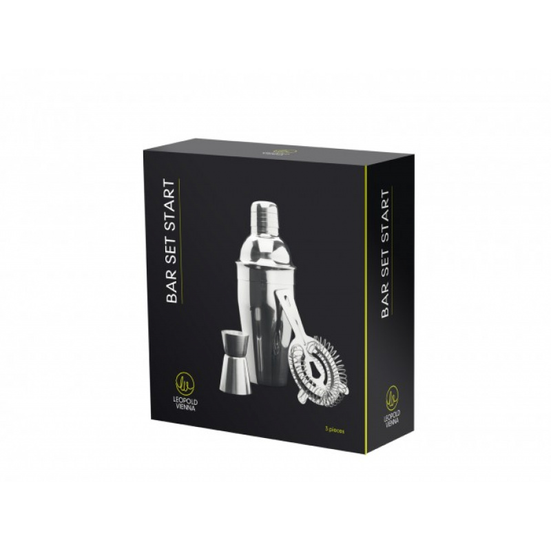 LEOPOLD VIENNA Сет за коктейли “Start“ - 3 ч.• Размери: 9.4 х 24.1 x 26.1 см • Материал: неръждаема стомана• Тегло: 0,345 кг.• Комплектът съдържа:  - шейкър - 500 мл;  - цедка;   - джигър• Бранд: LEOPOLD VIENNA Производител: Bredemeijer Group / Нидерландия