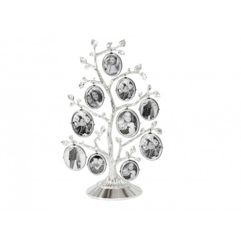 Фоторамка във формата на (родово) дърво, с 10 малки рамки. Рамките са двустранни. Фоторамката е посребрена и лакирана и не изисква полиране.