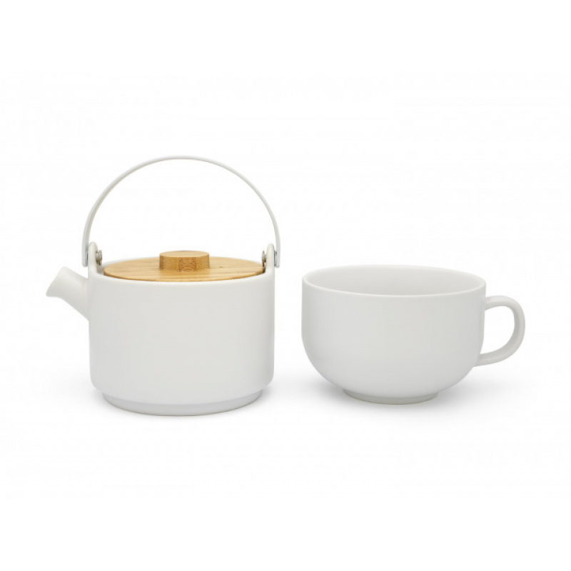 BREDEMEIJER Керамичен сет за чай с филтър и бамбуков капак “Umea“ - бял - 0,5 л.