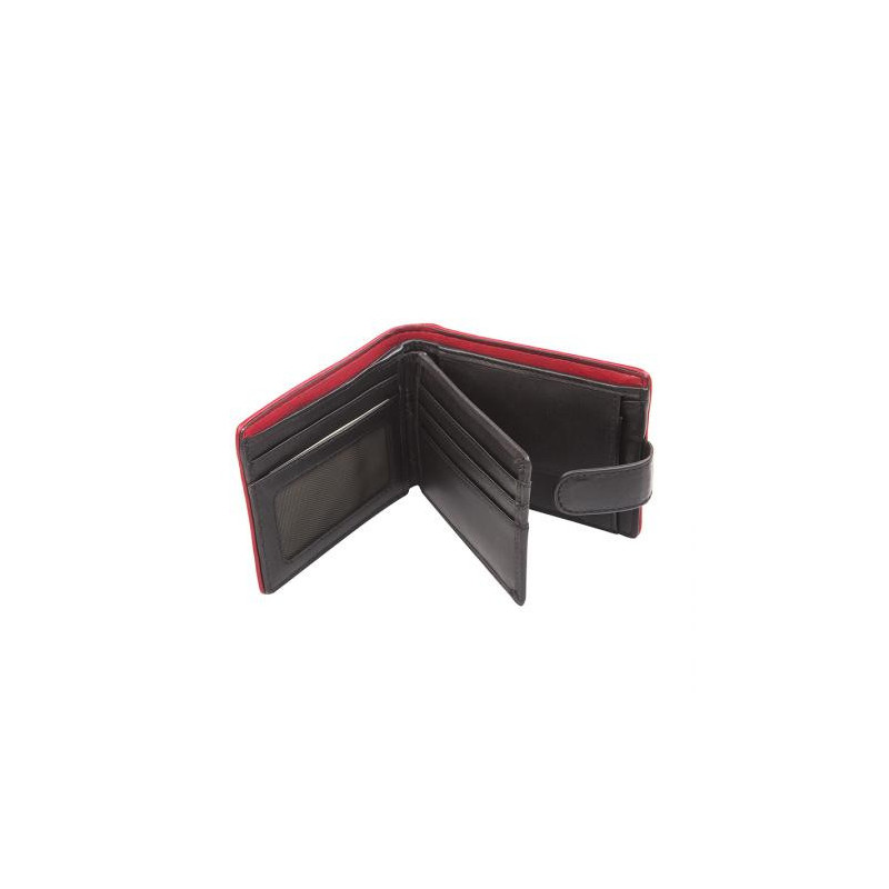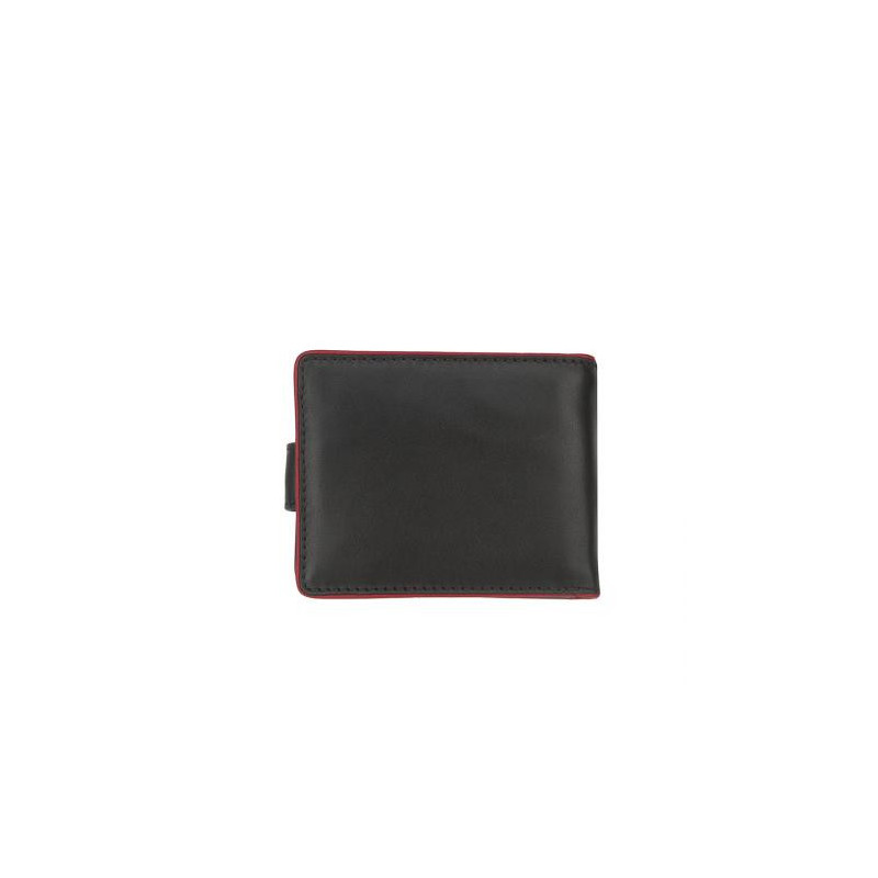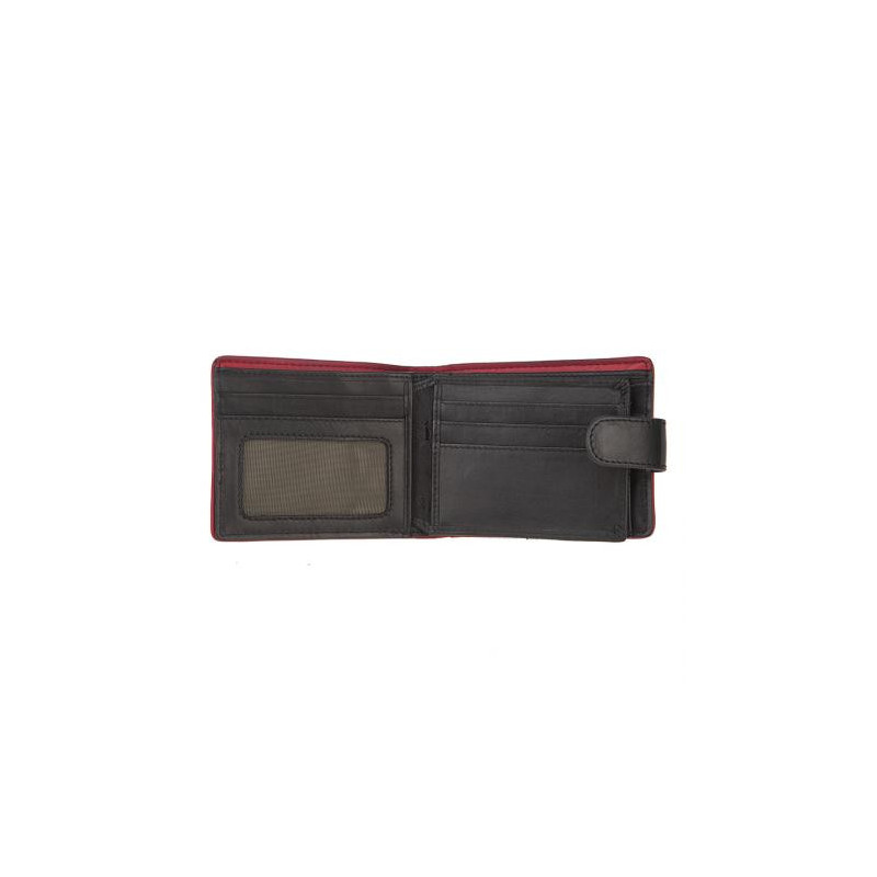Мъжки портфейл от естествена кожа с две отделения за банкноти. Едно средно отделение за карти и лични документи. Закопчаване от лицевата страна на портфейла. Размери: 9 * 11.5 * 2 см