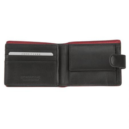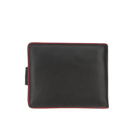Мъжки портфейл от естествена кожа с две отделения за банкноти. Едно средно отделение за карти и лични документи. Закопчаване от лицевата страна на портфейла. Размери: 9 * 11.5 * 2 см
