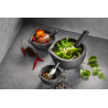 Изработено с груба вътрешна повърхност (за добро сцепление), което го прави подходящо за счукване, както на пресни, така и на сушени подправки и приготвяне на всякакъв вид дресинг.