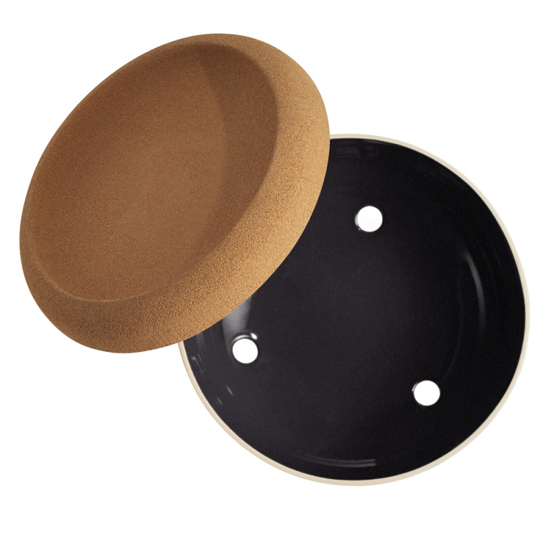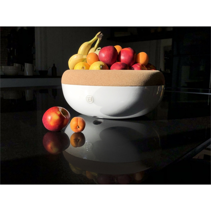 Създадена с интелигентен дизайн и само от естествени материали, керамичната купа / фруктиера е идеална за съхранение на свежи продукти и е с 2 нива. Корковият капак, можете да използвате като фруктиера за плодове, а керамичната основа като място за съхранение на лук, цвекло или картофи. Под капака липсата на светлина забавя покълването, а 3-те малки дупки осигуряват нужното количество вентилация. В съчетание с изолационните свойства на корка и керамиката, керамичната купа създава условия, подобни на тези на изба, но в сърцето на вашата кухня или трапезария. Коркът поема влажността, която плодовете отделят, а също така предпазва плодовете от  плодови мушици ( винарки).