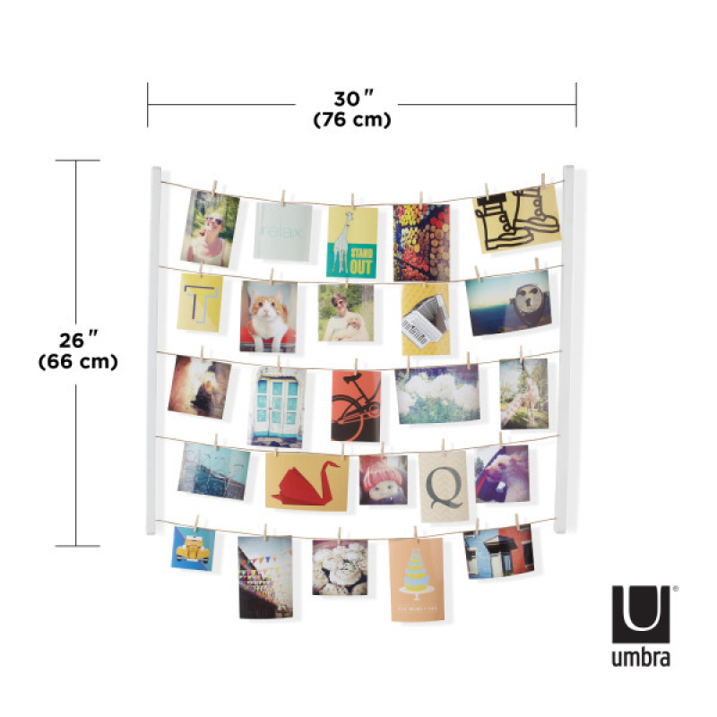 UMBRA Колаж за снимки “HANGIT“ - цвят бял• За 40 бр. снимки с различни размери• 40 бр. мини щипки за закачане• 5 бр. корди• Размер: 76 х 66 х 4 см. • Размер на опаковката: 69 х 11 х 4 см. • Материал: MDF• Тегло: 0,300 кг.Производител: UMBRA / КанадаDESIGN: SUNG WOOK PARK & PAUL LOEBACH