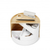 Moona притежава цилиндрична форма с въртящи се отделения, които я правят единствен по рода си органайзер за бижута. Декоративна и функционална, кутията за бижута има голям плот, върху който можете да поставите малки аксесоари, парфюми, малки растения и др. Има три големи, въртящи се на 360° чекмеджета, които могат да стоят прибрани или полуотворени, за по-лесен достъп до съдържанието. Със своята уникална полукръгла форма и красив дървен акцент, кутията за бижута може да бъде поставена върху тоалетка, плот, скрин, бюро и други.