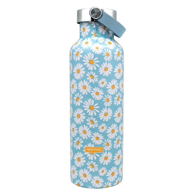 Nerthus Спортна бутилка с дръжка “МАРГАРИТКИ“ - 750 мл.Размери на опаковката: 24 см/ 23 см/ 34 см.Тегло: 0,370 кг.Материал: СтоманаКапацитет: 0.750 л.Производител: Vin Bouquet, Испания