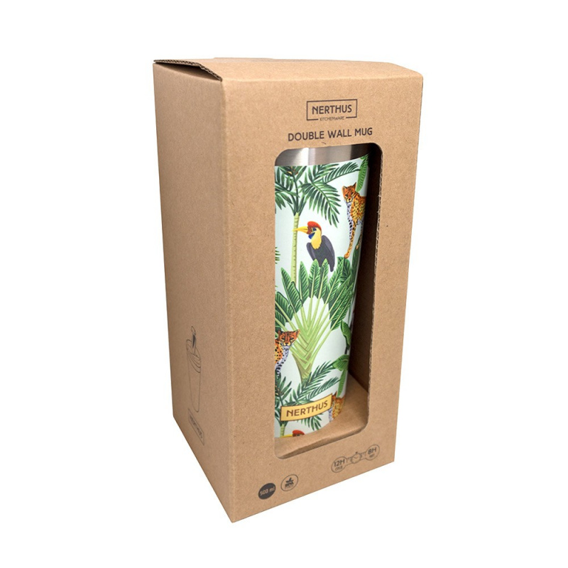 Nerthus Двустенна термо чаша “ДЖУНГЛА“ - 480 мл.Тегло: 0.315 кг.Материал: Стомана; пластмасаВместимост: 0.480 мл.Дизайн: ДжунглаПроизводител: Vin Bouquet, Испания