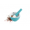 GEFU Порцеланово хаванче “MACINO“ - цвят - лазурно синьо • Размер: Ø 11 см • Подходящо за: ядки, сухи и пресни билки и подправки, песто и др. • Удобен улей за изливане • Материал: порцелан • Подходящo за почистване в съдомиялна машина Производител: GEFU / Германия