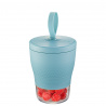 GEFU Двойна кутия за закуски "FOODIE" • Голям контейнер: 570 мл. (с тавичка за отцеждане на измити плодове) • Малък контейнер: 185 мл. • Цвят: лазурно синьо • Удобна и практична каишка за лесно пренасяне • Силиконово уплътнение за 100% защита от протичане • Размери: Ø 11,5 см. 23 см. (h) • Материал: Пластмаса, силикон • Подходящо за почистване в съдомиялна машина Производител: GEFU / Германия