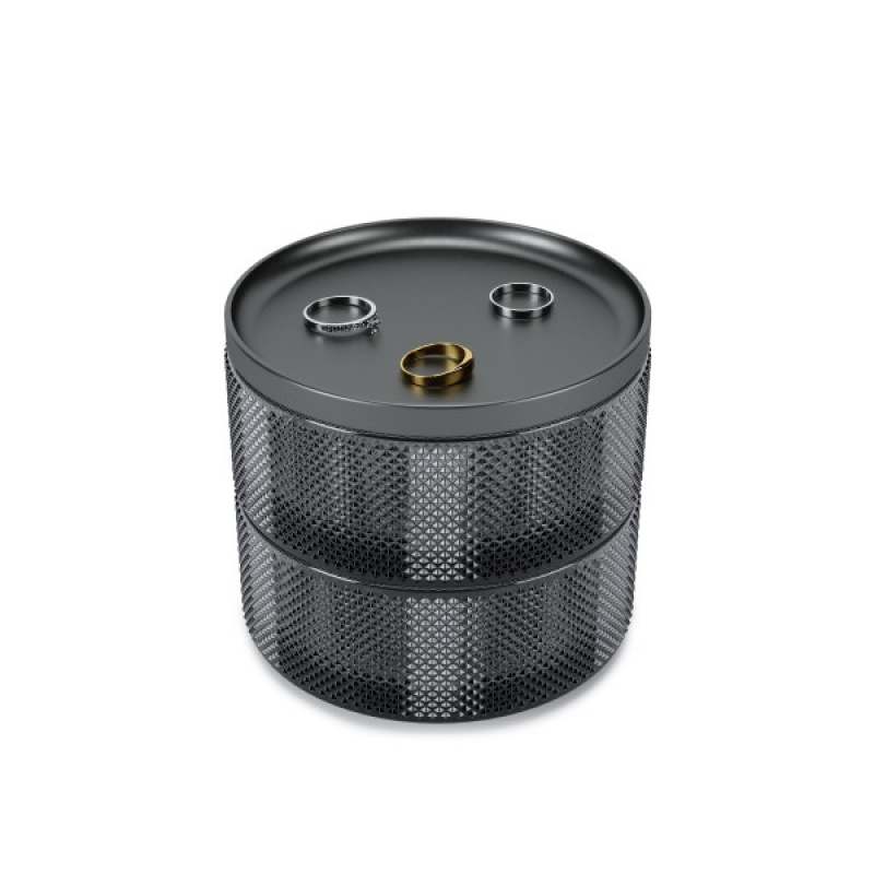 Предлагаща две нива, които могат да бъдат подредени едно върху друго или разделени, тази кутия за бижута е идеалния аксесоар за организиране и съхранение на Вашата колекция от аксесоари. Металният капак на кутията за бижута служи и като поднос, върху който да приготвите бижутата, които ще носите. Дизайнът на кутията за бижута я прави универсално решение за съхранение. Перфектният ѝ размер улеснява поставянето ѝ навсякъде в дома и гарантира, че бижутата няма да се загубят.