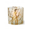 Свещникът "FOREST" има цилиндрична форма и е изработен от матирано стъкло с прозрачни декорация, напомняща на клони на дървета.