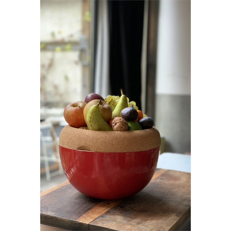 Създадена с интелигентен дизайн и само от естествени материали, керамичната купа / фруктиера е идеална за съхранение на свежи продукти и е с 2 нива. Корковият капак, можете да използвате като фруктиера за плодове, а керамичната основа като място за съхранение на лук, цвекло или картофи. Под капака липсата на светлина забавя покълването, а 3-те малки дупки осигуряват нужното количество вентилация. В съчетание с изолационните свойства на корка и керамиката, керамичната купа създава условия, подобни на тези на изба, но в сърцето на вашата кухня или трапезария. Коркът поема влажността, която плодовете отделят, а също така предпазва плодовете от  плодови мушици ( винарки).