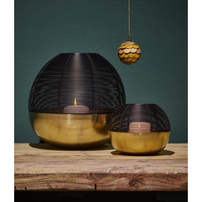 PHILIPPI Свещник “GRANADA“ - размер S• Материал: основа - матово златно покритие, капак - черна стоманена тел• Размери: 18 х 18 х 14 см (ДхШхВ)• Производител: PHILIPPI / Германия