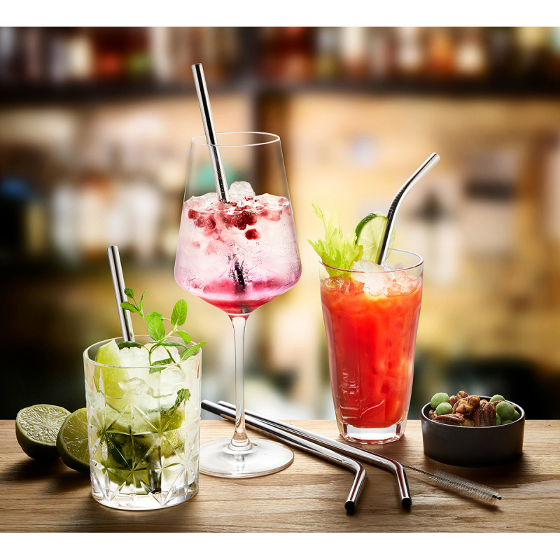 С грижа за природата! Комплектът от 4 бр стоманени сламки за пиене са една екологична и здравословна алтернатива на пластмасовите сламки.Изработени от стомана, те са предназначени за многократна употреба. Не задържайки никакви аромати и вкусове, със стоманените сламки ще се насладите на любимите ви сокове, смути, вода, коктейли, кафе и др.Подходящи за миене в съдомиялна машина.