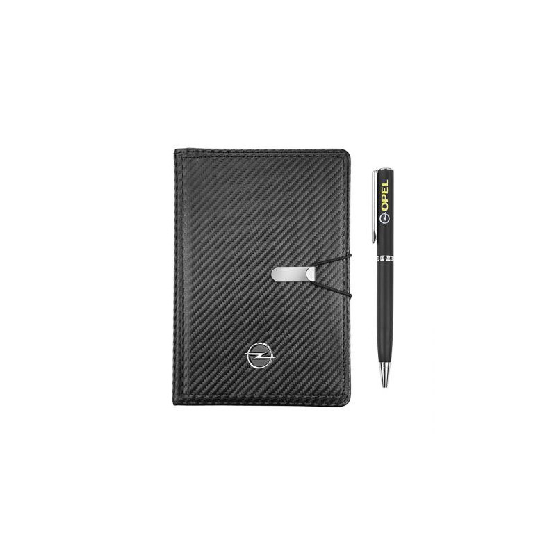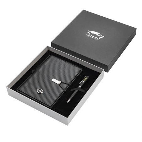 Стилен подаръчен сет в луксозна кутия включващ химикал и тефтер с лого на Opel. Размери на тефтера: 15 x 21 см