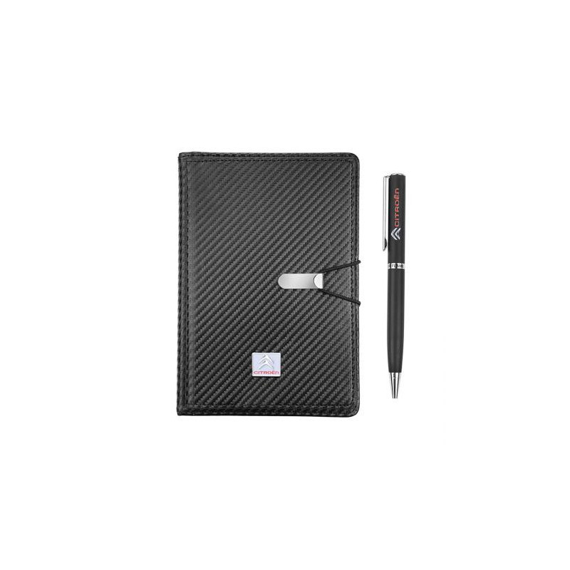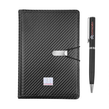 Стилен подаръчен сет в луксозна кутия включващ химикал и тефтер с лого на Citroen. Размери на тефтера: 15 x 21 см