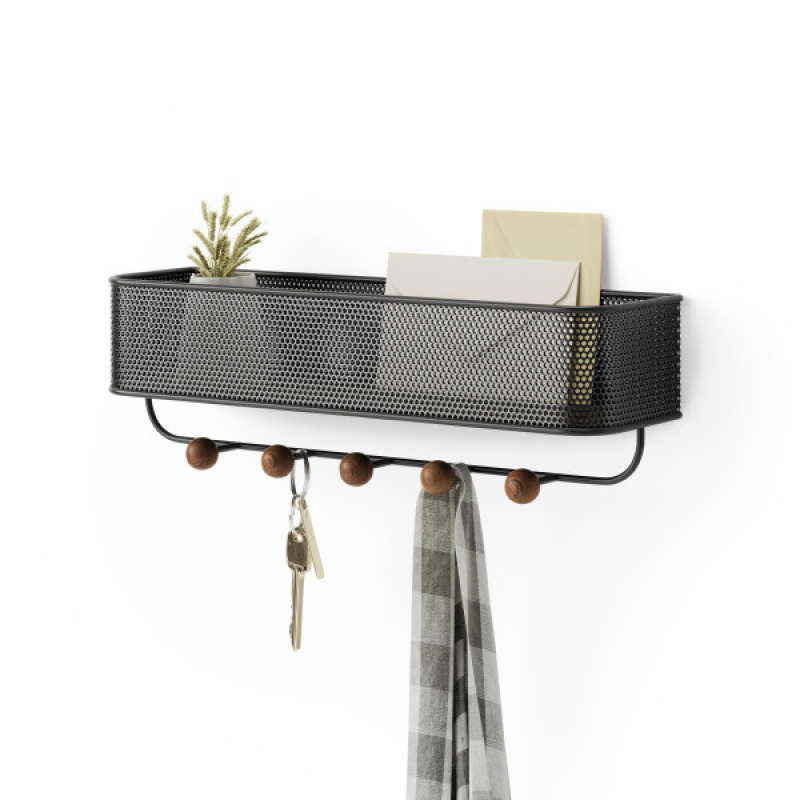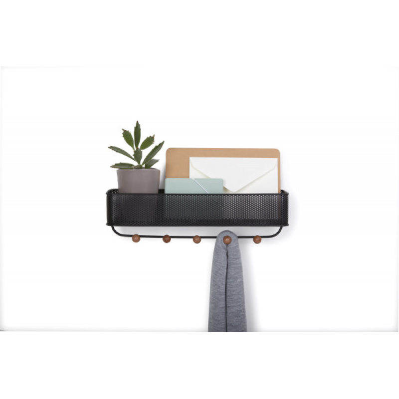 UMBRA Стенен органайзер с 5 бр. закачалки “ESTIQUE“ - цвят черен / орех