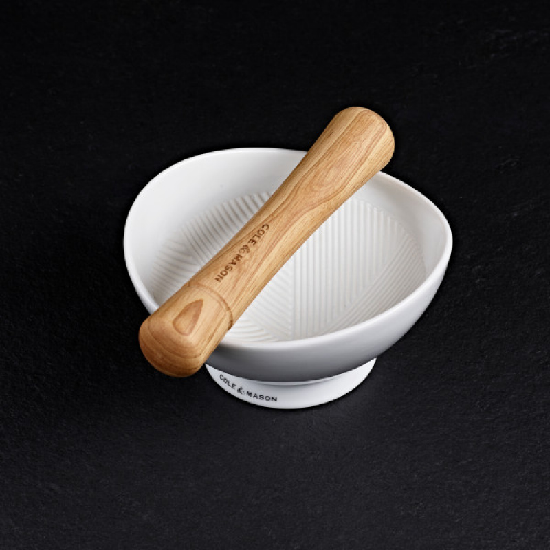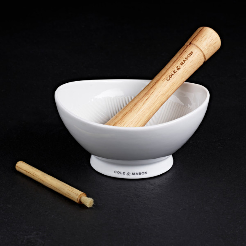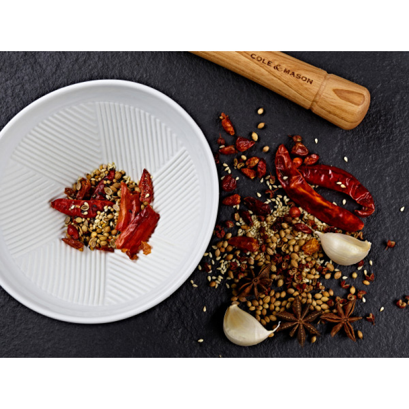 Вдъхновено от традиционните японски Suribachi и Surikiogi, това ново хаванче от Cole & Mason е подходящо за широка гама от подправки за приготвянето на различни ястия. Представлява елегантно проектирана керамична купа гланцирана външна част и негланцирана вътрешност. В комплекта е включено дървен чукало за смилане, а малката, твърда четка е включена, за да помогне за отстраняването на смлените семена, билки, подправки или ядки.