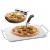 Насладете се на перфектната пица у дома, точно като италианец. Благодарение на професионалния камък за печене на пица, топлината се разпределя равномерно и влагата се абсорбира. Резултатът е чудесна хрупкава основа. С лопатката е лесно да поставита пицата върху камъка за печене и върху чинията за сервиране. Острият нож нарязва пицата без усилия на готови за консумация парчета. Приятен апетит!