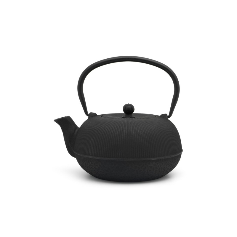 Азиатски сервиз за чай, състоящ се от чугунен чайник и две порцеланови чаши. Чайникът е с черно покритие, вместимост 1 литър и се предлага с филтър от неръждаема стомана. Чашите са със съвременен дизайн. Създайте автентична чаена церемония у дома!