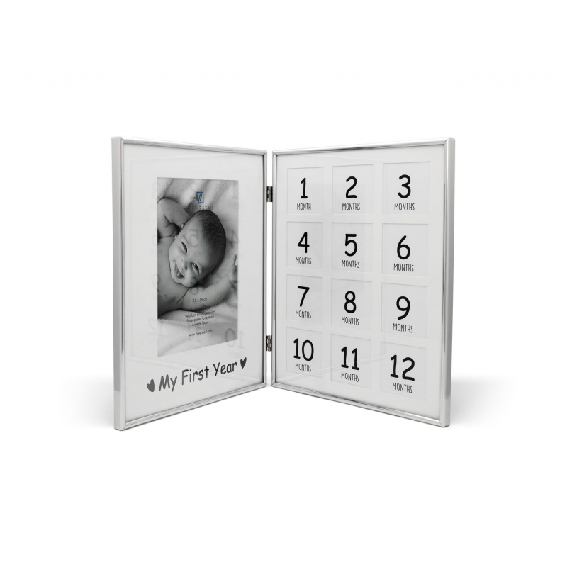 Първата година на вашето дете е наистина много специална! Не би ли било забавно да запазите снимките в прекрасна фото рамка? Тази рамка може да побере една голяма и 12 малки снимки.