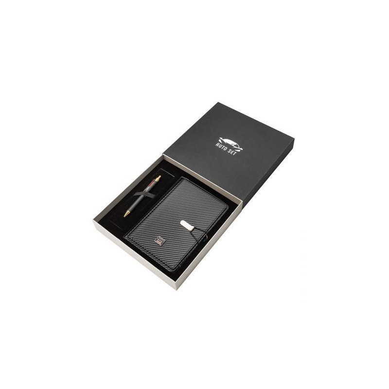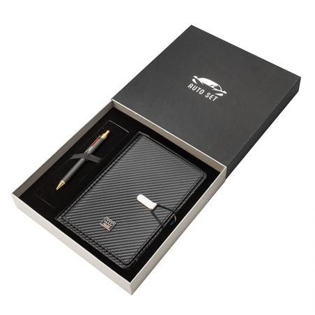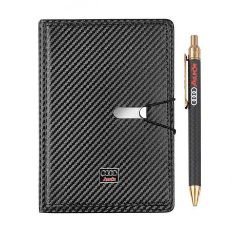 Стилен подаръчен сет в луксозна кутия включващ химикал и тефтер с лого на AUDI. Размери на тефтера: 15 x 21 см