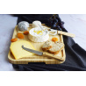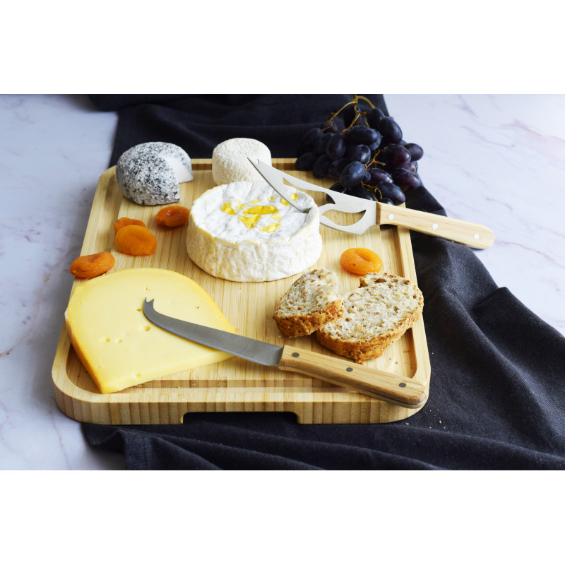 Комплектът за сирене включва 2 ножа за сирене от неръждаема стомана с бамбукови дръжки.Тези два ножа са проектирани да отговарят на специфични нужди по отношение на рязане на сирена.Ножовете за сирене се почистват с гореща вода и мек препарат за съдове. Препоръчваме Ви да избягвате твърде агресивните препарати за миене на съдове, това ще осигури по-дълъг живот на ножовете. Не оставяйте бамбуковите дръжки да изсъхнат на открито, препоръчително е да ги избършете веднага след измиване с мека кърпа.