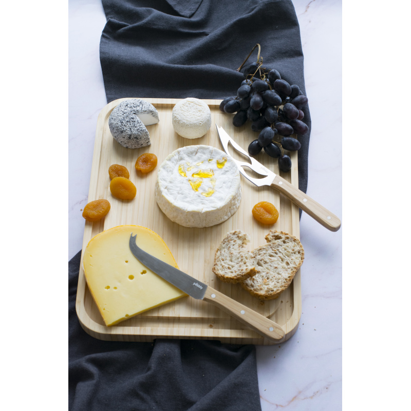 PEBBLY Комплект ножове за сирена - 2 части• Материали: бамбук, стомана• Комплектът съдържа: - Нож за твърди сирена - 22 см. - Нож за меки сирена - 22 см.• Ножовете не са подходящи за съдомиялна машинаПроизводител: PEBBLY / Франция