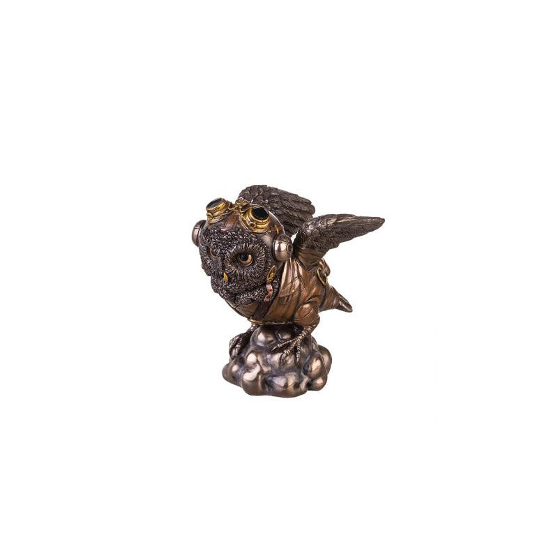 Бухалът се смята за символ на мъдрост и дълголетие, но също така благоприятства и духовното израстване. Някои свързват присъствието му като вестител на просперитет. Бухалът безспорно е царят на нощта. Той е тих летец, което го прави изключителен ловец. Статуетката е изработена прецизно от полирезин с покритие от метал и с внимание към всеки детайл. Размери: 7*9.5*10.5 см