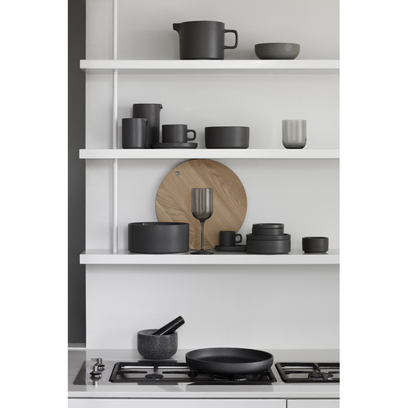 Новата серия PILAR на BLOMUS впечатлява със своя изчистен дизайн и линейни форми. Съдовете от серия PILAR са ръчно изработени от каменна керамика - смес от глина, кварц и минерали. Каменната керамика е най-новата и модерна тенденция в сервизите за хранене.Основната характеристика на PILAR е хармоничният контраст между матовата външна повърхност и гланцирана вътрешна част.Приятно меките и приглушени цветове са семпли и ненатрапчиви и всички части от колекцията се съчетават прекрасно. Тъй като функционалността също е много важна, съдовете от серия PILAR се подреждат един върху друг ( напр. чиния става капак на купа със същия диаметър)Зад новата и ултра модерна серия  стои дизайнерката Нина Тьоминг от Flöz Design.Серията предлага всички основни части, които трябва да съдържа един пълен сервиз за хранене.Тъй като керамиката се произвежда при много високи температури (които понякога варират ), могат да се видят фини вариации в цвета и несъвършенства в материала. Това прави всяка част от колекцията уникална.