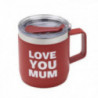 Термочашата е изработена от пластмаса отвън и метал отвътре. Подходяща е за съхранение на топли и студени напитки. Капачето осигурява безопасност от разливане. Размери: височина 10.5 см, диаметър 9 см, вместимост 400 мл