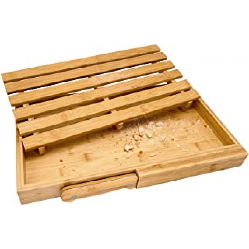 Дъската се състои от подвижна скара, върху която да се реже, и табла за събиране на трохите, която помага да се запази кухнята чиста.