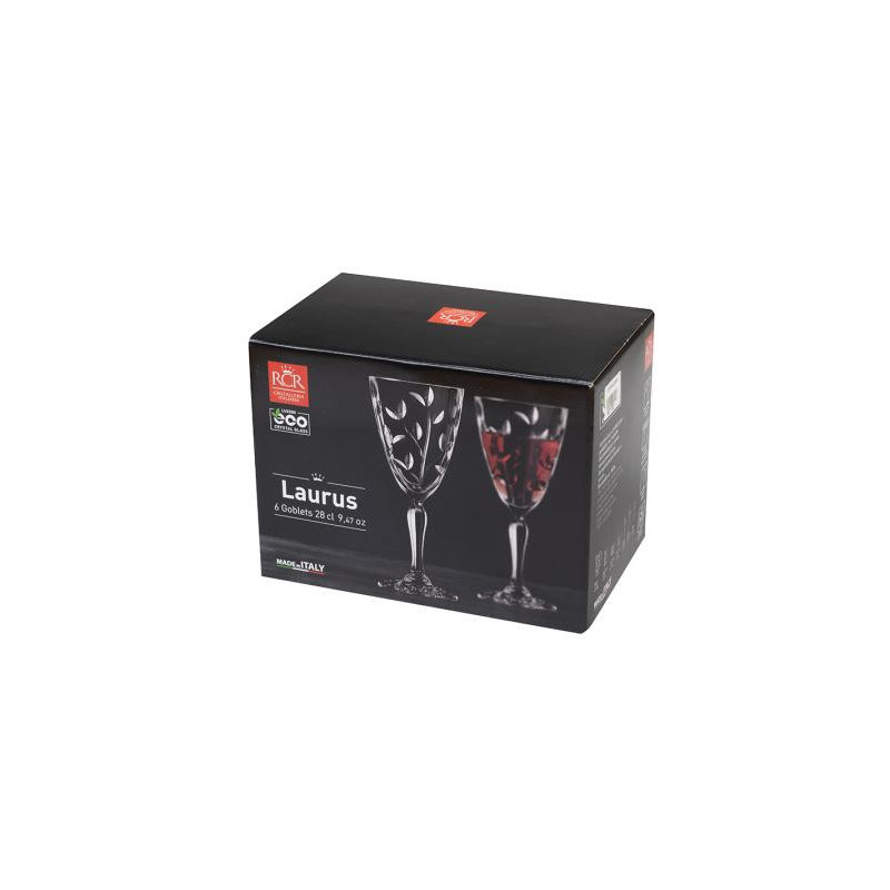 Стилен комплект от 6 чаши за вино, произведени от италианската фирма RCR Crystal. Вместимост на чашите ..... мл. Подходящи за почистване в съдомиялна машина. Подарете си финес и красота на масата с италианско качество и изящен дизайн.