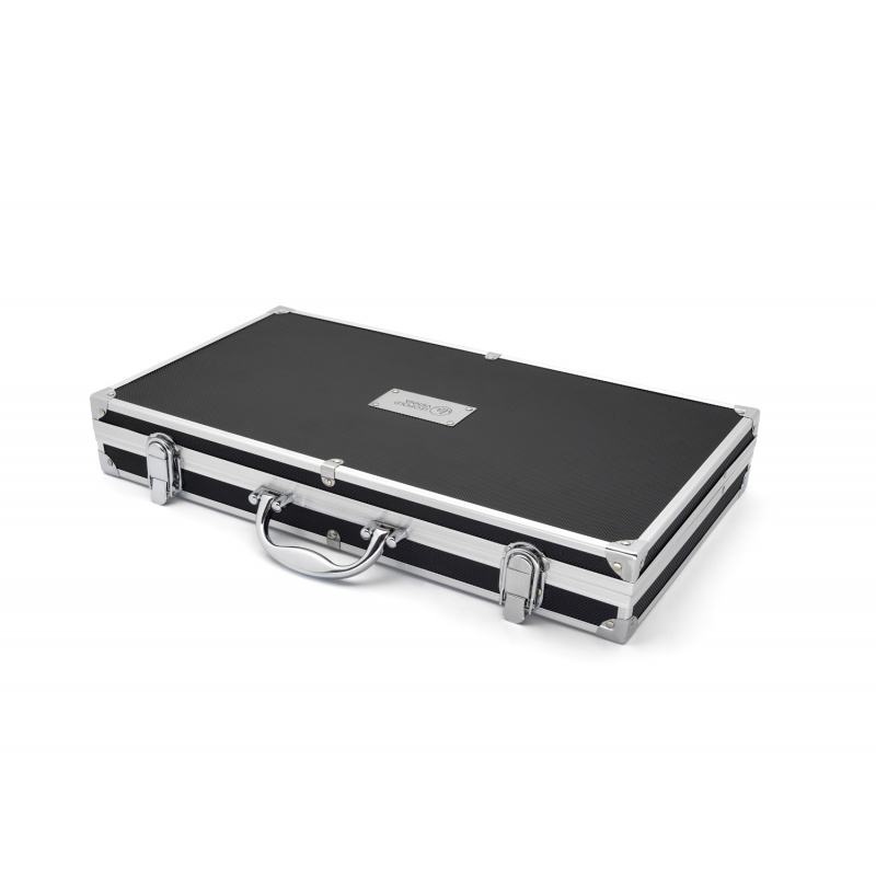 LEOPOLD VIENNA Комплект за барбекю в куфарче - 18 ч. - черен цвят - BLACK EDITION• Размери: 48 х 7,5 x 26,5 см • Материал: неръждаема стомана• Тегло: 3 кг.• Комплектът съдържа:  - вилица;  - щипки;  - шпатула;  - нож;  - четка за почистване;  - 4 бр. шишчета  - 8 бр. държачи за царевица или картофи  - куфар. • Бранд: LEOPOLD VIENNA Производител: Bredemeijer Group / Нидерландия