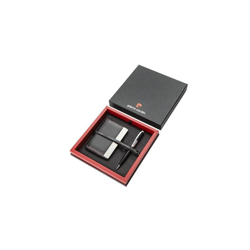 Луксозен комплект, който съдържа калъф за документи и елегантен химикал, съчетани със стилна кутия Pierre Cardin. Размери на калъфа: 108,5x76,5x11 мм. Материал: еко кожа