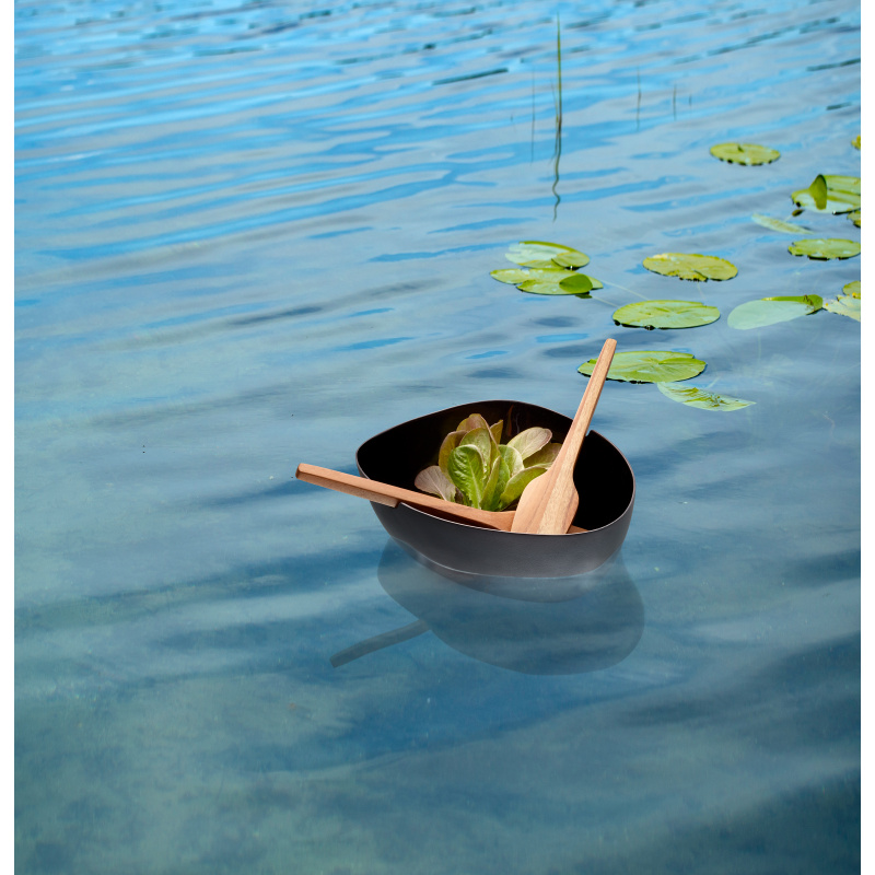 PHILIPPI Купа за салата с прибори за сервиране “BOAT“• Материал: алуминий, акациево дърво• Размери:  20 x 28 x 10 см• Тегло: 0,800 кг• Производител: PHILIPPI / ГерманияDesign: Jörg Langkop