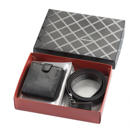 Луксозен комплект, който включва портфейл от естествена кожа и двулицев колан в подaръчна кутия на SILVER FLAME. Размери на портфейла: 11.5 x 9.5 x 2 см.
