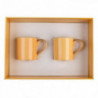 Комплекта се състои от два броя порцеланови чаши. Размери : височина 8.5 см. ; диаметър 7.5 см. ; вместимост 200 мл. Предлага се в подаръчна кутия.